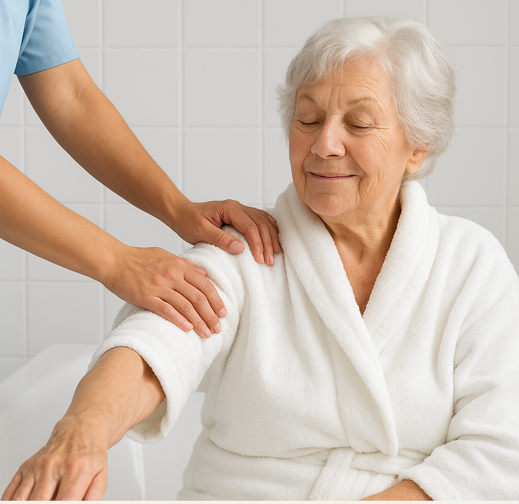 Our Bath Visit service provides gentle, respectful assistance with bathing or showering to help clients stay fresh, clean, and comfortable. During this one-hour visit, our caregiver will assist with personal hygiene, dressing, grooming, and basic tidying of the bathing area if needed.